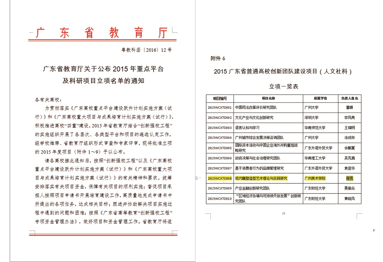 广东省普通高校创新团队建设项目立项文件