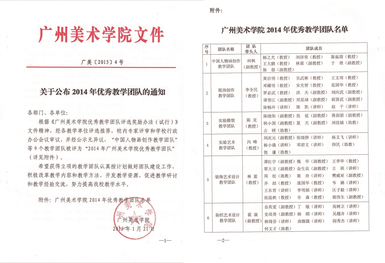 广州美术学院2014年优秀教学团队 |