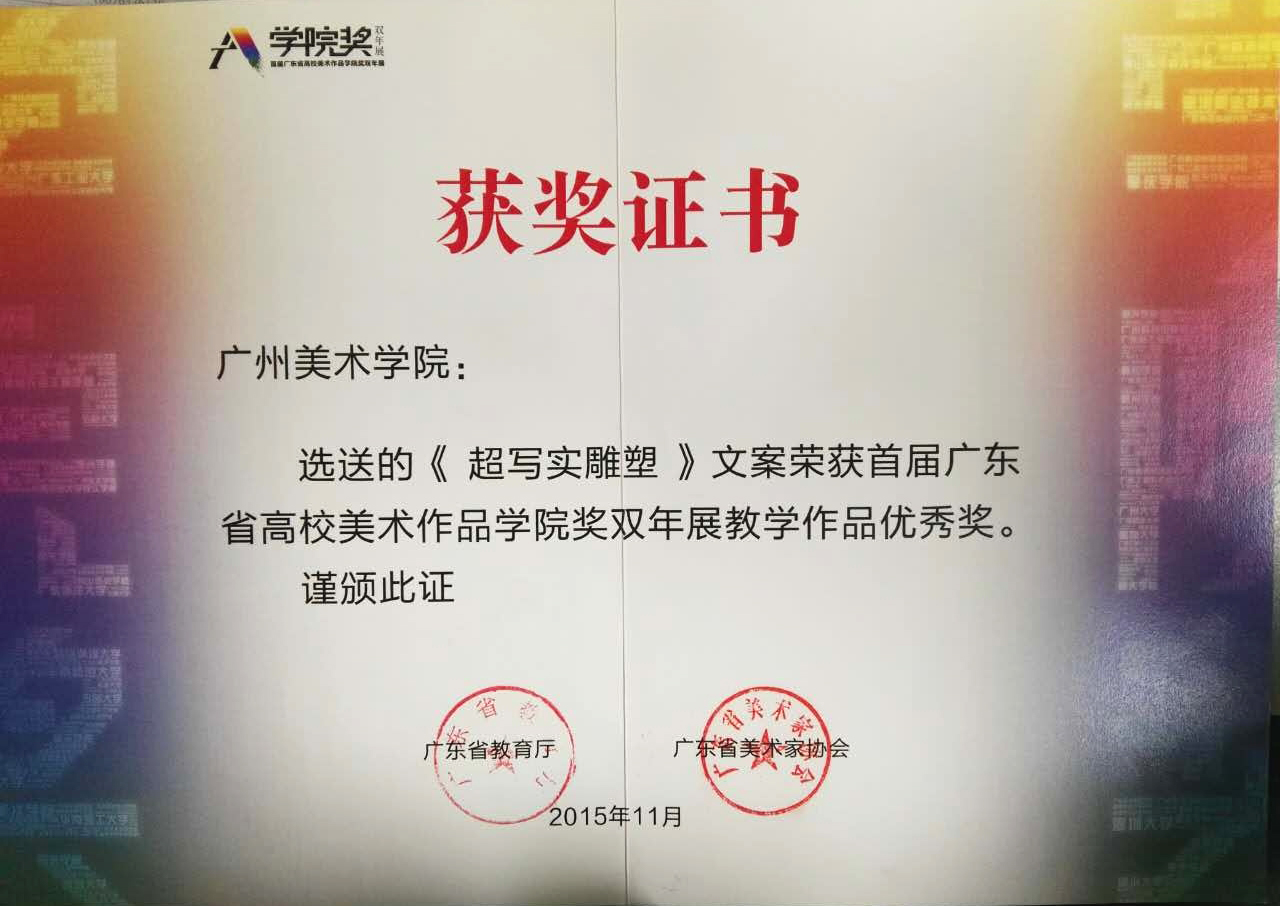 《超写实雕塑》文案荣获首届广东省高校美术作品学院奖双年展教学作品优秀奖